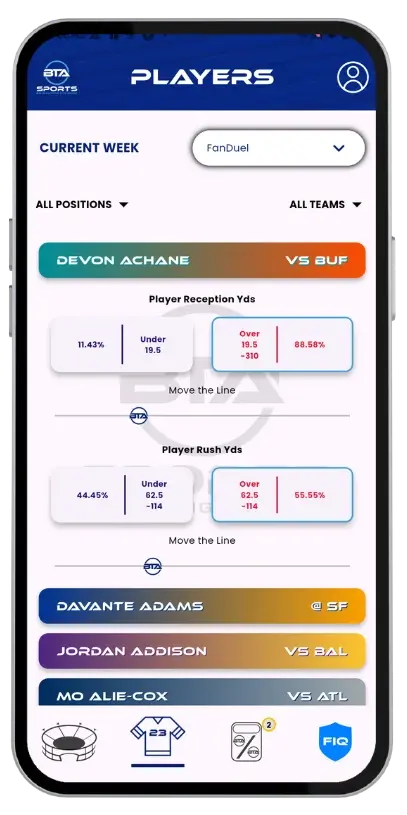 BTA Sports uses advanced AI to deliver probability-weighted insights for NFL games. Unlike traditional platforms, it emphasizes transparency and lets users adjust variables like spreads and totals to see how odds change, promoting smarter, risk-aware decisions.